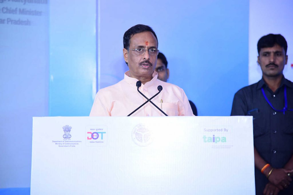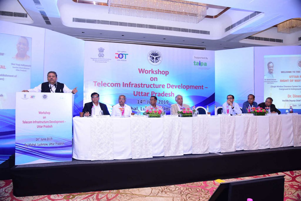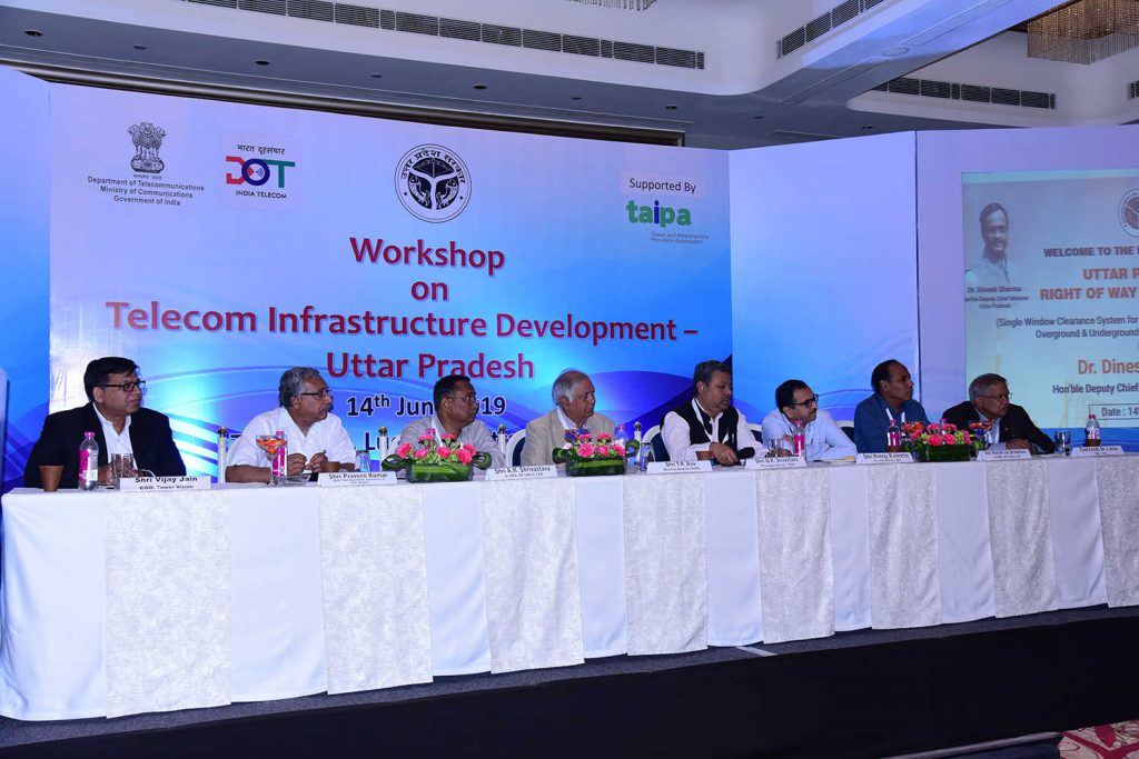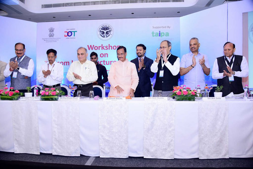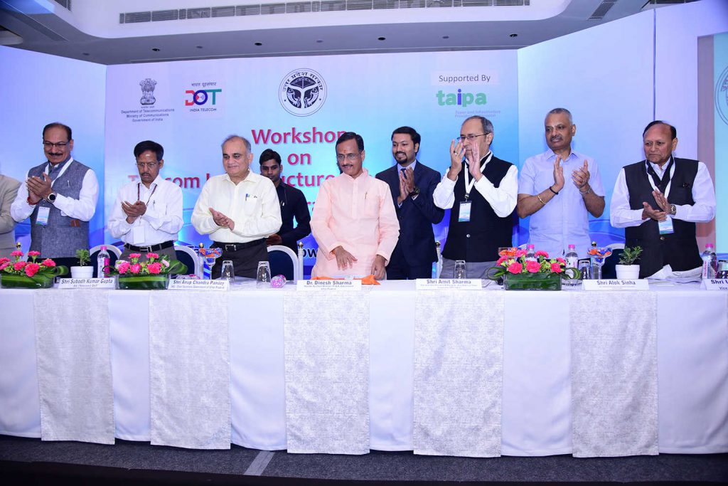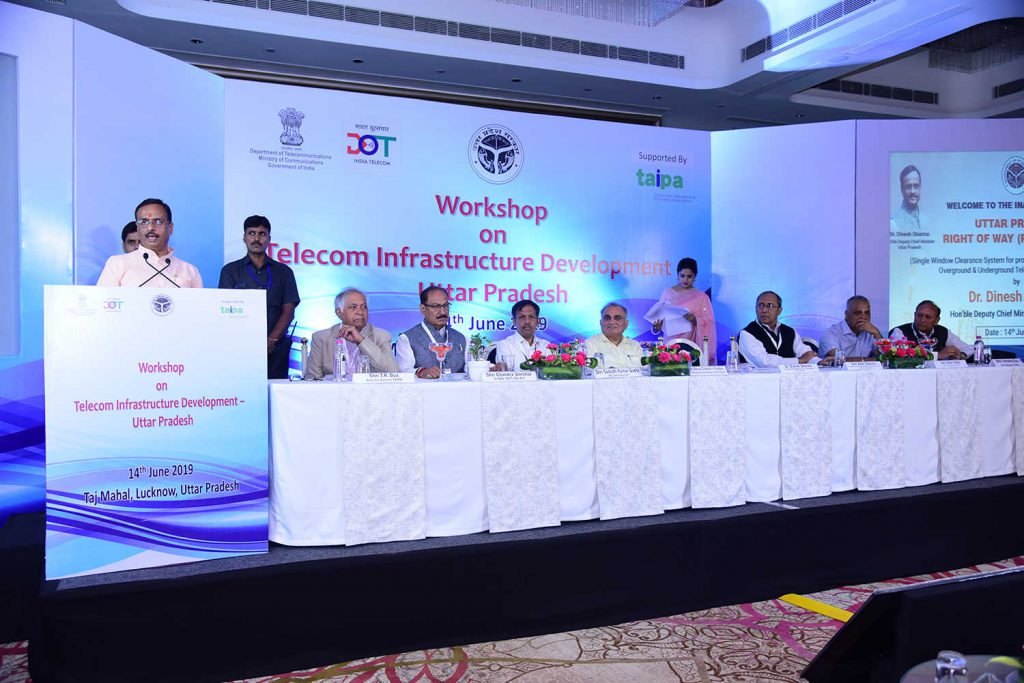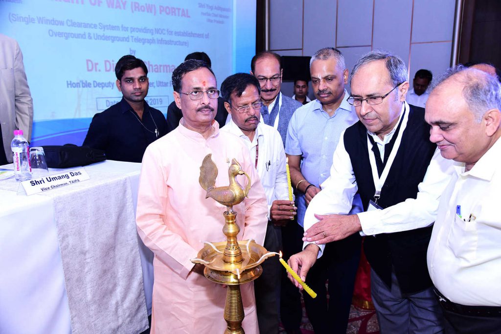 For providing online clearance to the applications received for the establishment of Telegraph Infrastructure in State, Uttar Pradesh “Right of Way” (RoW) Single Window Clearance System (www.uprow.in) is inaugurated by Hon’ble Deputy Chief Minister, Uttar Pradesh, Dr. Dinesh Sharma in the auspicious presence of Chief Secretary (U.P.), Additional Chief Secretary, IT & Electronics Department (U.P.) and other Officials from Department of Telecom, Govt. of India & TAIPA.